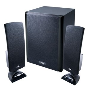 Cyber Acoustics CA-3402 3-Piece Computer Speakers With a name like Cyber Acoustics, you’ve got to be serious about sound. And with its new CA-3402 2.1 three-piece subwoofer with flat panel satellites, Cyber Acoustics demonstrates that it’s equally serious about your listening pleasure. With convenient controls, an attractive cloth grill cover, magnetically shielded satellite speakers, acoustically balanced wood cabinet subwoofer – the CA-3402 aims to please. With a bass reflex, ported enclosure on the subwoofer, 20-watts RMS total system power output, and 40-watts total system peak power, the Cyber Acoustics CA-3402 delivers full-bodied, balanced sound to satisfy even the most discerning audiophile. Complete cable assembly included for immediate set up. Take your sound seriously with Cyber Acoustics CA-3402 three-piece Computer Speakers.
